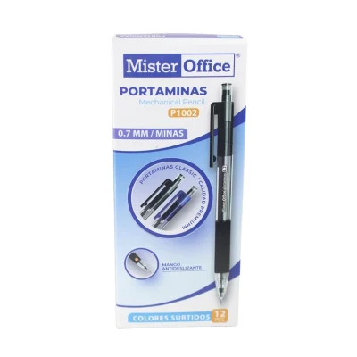 Pack de 12 portaminas Mister Office con punta de 0,7 mm y agarre “Grip” para dibujo técnico y escritura precisa.