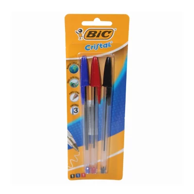 El clásico bolígrafo BIC Cristal ofrece escritura fluida y confiable. Este pack incluye tres unidades en colores esenciales (negro, rojo y azul), con punta media de 1.0 mm y cuerpo transparente. Ideal para tareas escolares, oficina o uso diario.